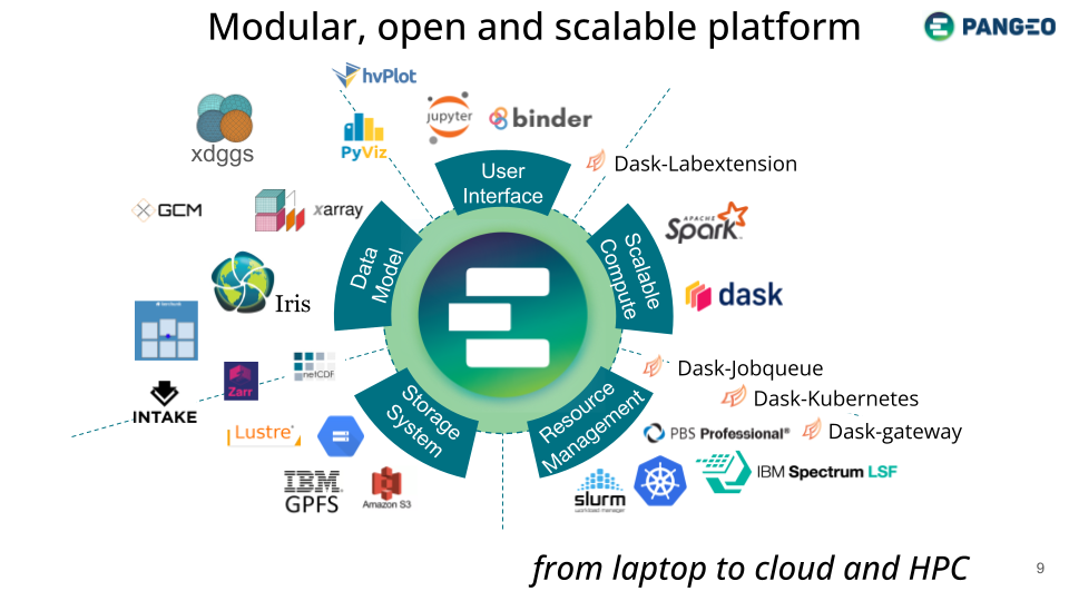 - pangeo stack → Dask + xarray ecosystem for scalable EO.